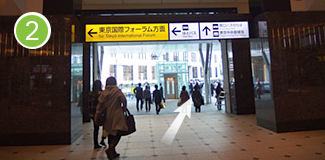 三つの出口のうち一番左側の「東京国際フォーラム方面」から外にでます。